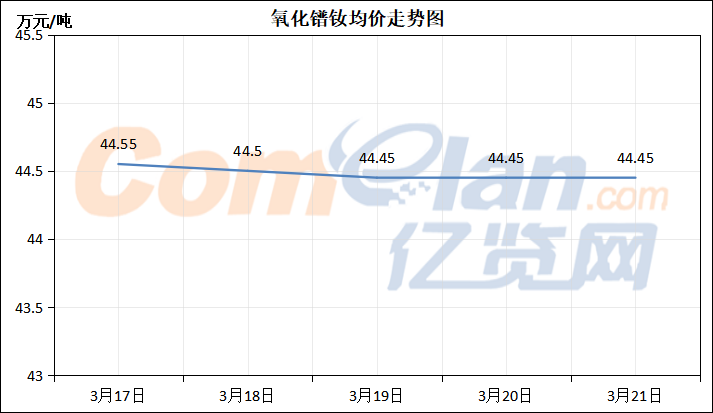 因此,镨钕市场陷入僵持局面,买卖双方主要以上下试探为主。具体价格方面,氧化镨钕价格区间在44.4-44.5万元/吨,金属镨钕报价为54.3-54.5万元/吨,单镨单钕价格延续平稳,氧化钕价格在45.4-46万元/吨,金属钕为56-56.4万元/吨,氧化镨价格区间是45.8-46.4万元/吨,金属镨则为60.3-60.7万元/吨。
