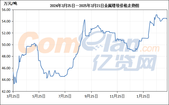 镝铽价格表现各异。镝价格走势平稳,整个周内价格基本保持稳定。下游询单补货量不多,市场供需相对平衡,使得报价也维持稳定。而铽价格则是涨后回落。周初,下游补货情况良好,商家情绪积极,由于市场上低价现货难寻,厂家凭借现货优势报价坚挺,低价出货意愿极低。但到了周中,铽价格开始偏弱运行,下游采购量减少,这可能是因为价格上涨到一定程度后,下游企业的采购能力和意愿受到限制,市场需求出现阶段性调整。