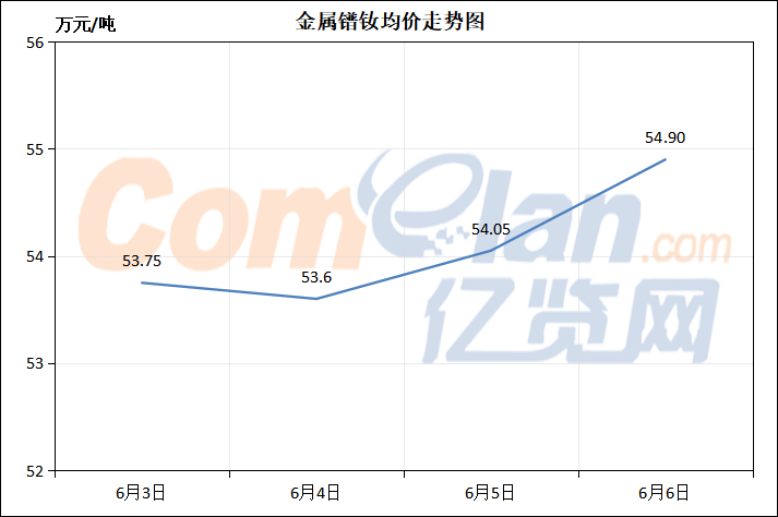 本周钬价呈现上调态势。周初钬产品价格稳中偏强,市场询单情况尚可,下游多按需采购。场内低价报价较少,商家询货时多有压价行为,贸易商参与度不高,实际成交以少量为主,当前氧化钬报价为 51.5-52 万元 / 吨。