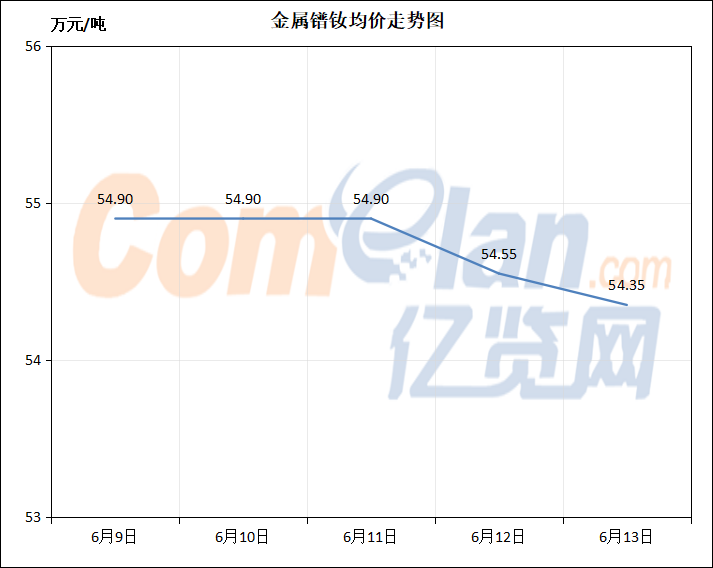 本周,镝价出现小幅回落。周初,镝的市场价格为160万元/吨,彼时市场交易氛围尚可,下游企业按需开展询单工作。但随着时间推进,整周镝价呈现震荡下行态势。由于市场现货供应充裕,而下游需求却持续萎靡,难以形成有效价格支撑,致使场内报价不断走低,实际成交价格也随之下滑。