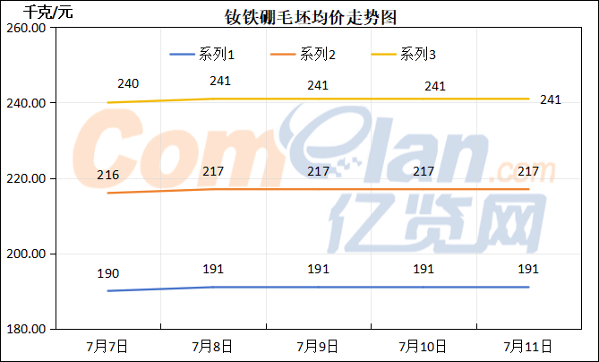 本周稀土价格呈上涨态势。其中,镨钕产品涨势突出,市场成交量有所增加,氧化物及金属价格均突破了上半年的高位。市场情绪转好,磁材大厂陆续开展招标采购,金属成交量上升,对价格形成一定支撑,市场活跃度提高,镨钕价格走势强劲,且对后续市场的预期较好。镝铽价格同步上涨,但涨幅相对平缓。镝价主要受大厂采购推动,出现高位成交,下游需求保持相对稳定;铽价小幅波动,成交量有限。对于后续市场,业内普遍认为镨钕产品价格易涨难跌,具体的上涨幅度仍需进一步观察;镝铽价格则大概率以稳定为主。