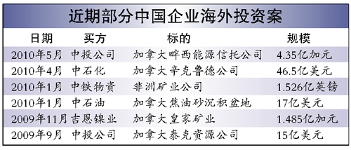 加拿大的油砂资源吸引了不少中国企业。早在去年9月,中投曾经斥资15亿美元收购加拿大泰克资源公司17.2%的股权。今年上半年,中石油和中石化分别对加拿大油砂企业投资17亿美元和46.5亿美元。