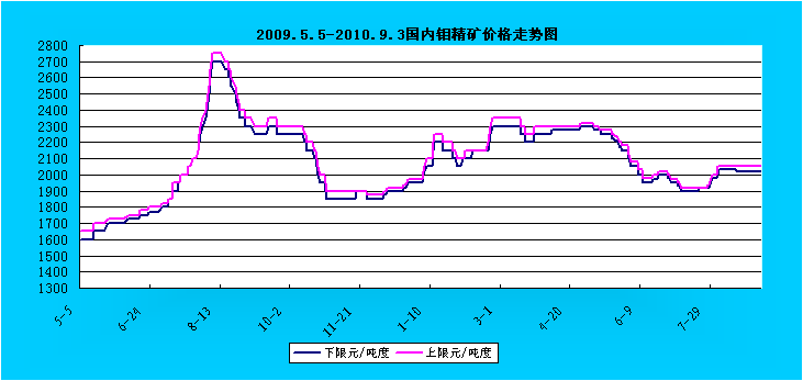 钼精矿|2010年9月3日国内钼精矿价格走势图