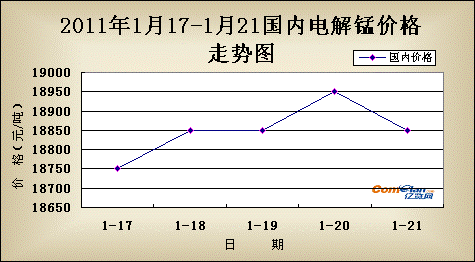 本周电解锰价格整体有微度波动,市场主流价格围绕18800元/吨左右变化。市场供求关系以缓和为主,较上周相比涨幅为100元/吨。截止目前为止,市场主流价格为湖南花垣18800-18900元/吨,湖南怀化18800-18900元/吨,重庆秀山18800-18900元/吨,贵州松桃18800-18900元/吨,广西18900-19000元/吨,上海19200-19300元/吨。