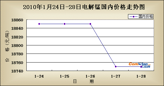 本周电解锰价格整体只有微幅波动,市场主流价格盘旋在18800元/吨左右。市场成交日益减少,较上周更加清淡。截至目前为止,市场主流价格为湖南花垣18700-18800元/吨,湖南怀化18700-18800元/吨,重庆秀山18700-18800元/吨,贵州松桃18700-18800元/吨,广西18800-18900元/吨,上海19100-19300元/吨。