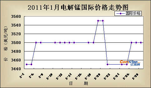 国内方面: 本月电解锰市场整体呈上涨趋势,延续了12月份的上涨势头,涨幅达600元/吨。截止月末,市场主流价格为湖南花垣18700-18800元/吨,湖南怀化18700-18800元/吨,重庆秀山18700-18800元/吨,贵州松桃18700-18800元/吨,广西18800-18900元/吨,上海19100-19200元/吨。