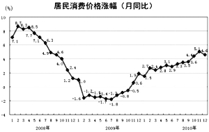 2010年物价涨幅高于目标特别是四季度较大幅度的攀升,除了危机时期宽松货币政策的滞后影响之外,以下两个因素是导致第四季度CPI超出预期的成因。一是输入性通胀与成本推动叠加效应更加明显。第四季度物价上涨中以农产品的价格上涨起到的作用最大,比如11月食品价格上涨了11.7%,拉动CPI涨3.8%。背后的缘由在于国际粮食价格不断上升,输入性通胀压力增大;劳动力成本上升,加上农业生产资料价格居高不下,农产品价格上涨具有一定的合理性。二是通胀预期自我强化和投机因素推波助澜。去年四季度,各种极端天气频繁出现,气候异常,对大家的心理产生了极大影响,导致通胀预期不断增强,形成自我强化态势。在这样的土壤下,加上有充裕的资金,在信息不完备、监管不健全的市场环境中,投机者推波助澜,出现非理性的脱离供需关系的上涨。