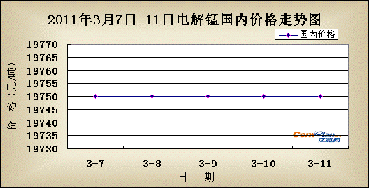 国内价格:上周电解锰疯狂上涨之后,本周电解锰市场主要以企稳为主。市场主流价格为19700-19800元/吨。