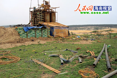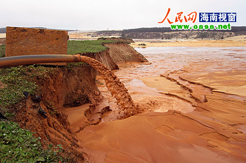粗大的水管正在排放采钛矿产生的尾砂和污水 人民网海口3月23日电(记者肖霈)“粗大的水管正在排放采钛矿产生的尾砂和污水。”在海南文昌市昌洒镇白土村牧场坡附近,大型采矿机正在热火朝天的运转。为了2000多元的工资,两位打工者不顾一切,被“围”在数十米深的矿坑里工作。