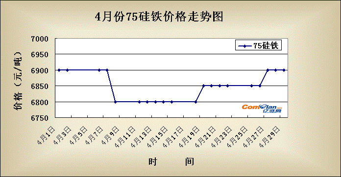 2011年4月份国内75#硅铁市场主流成交价格走势图