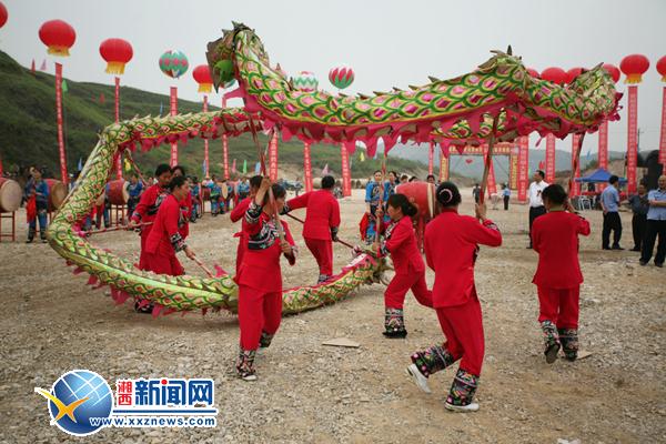 仪式当天还请来了包括舞龙队、苗鼓队、号鼓队等在内的民间文艺团体,气氛十分热闹 记者 田薇/摄