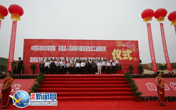 仪式上,中国环境科学研究院与花垣县人民政府还就工业园区建设签署了《中国环境科学研究院——花垣县人民政府共建花垣生态工业园框架协议》。花垣县生态工业园区规划建设总面积为15平方公里,规划建设年限为2008——2030年,总投资约72亿元,2009年10月被省政府办公厅、省发改委联合授予“湖南省新材料产业自治州基地”。