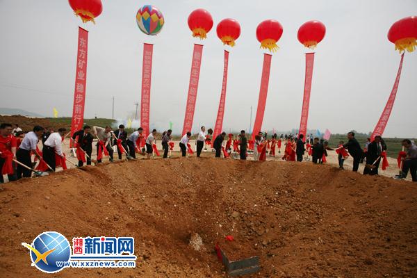 红网湘西站4月29日讯 (记者 田薇) “我宣布湖南东方矿业有限责任公司年产15万吨电解锰生产线及深加工项目正式开工!”今日上午11时许,在花垣县生态工业园区内,随着湘西州人大主任刘路平一声开工令的下达,霎时鼓乐震天、礼花齐放、掌声雷动、全场欢腾,这标志着世界顶级电解锰企业——湖南东方矿业有限责任公司正式落户花垣,其旗下的年产15万吨电解锰生产线及深加工项目正式投产之后将实现年产值30余亿元,实现利润4.5亿元,上交税费达3.6亿元,给力湘西区域经济。