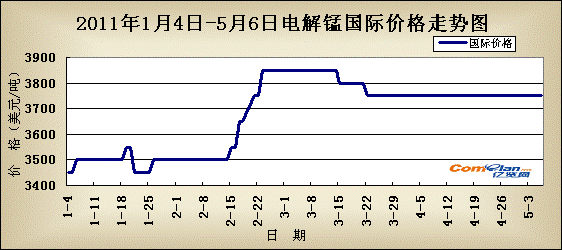 国际市场:随着国内电解锰市场疲软不前,国际市场较稳。目前澳洲市场FOB价格为3430-3530美元/吨,亚洲地区FOB价格为3600-3700美元/吨。近期锰桃出口征收20%出口关税,势必会对后市电解锰出口量造成重创。