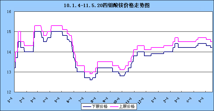 四钼酸铵|5月20日国内优级品四钼酸铵价格走势图
