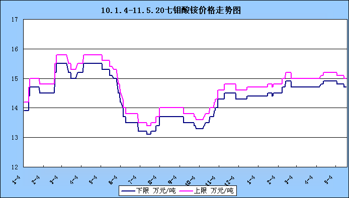 七钼酸铵|5月20日国内一级品七钼酸铵价格走势图
