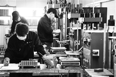 江西赣州中瑞材料科技有限公司有色金属加工车间,工人在生产线上紧张忙碌着。 朱建华摄(中经网供图)