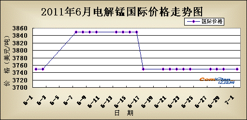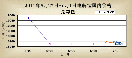 国内市场: 本周为6月份最后一周,而电解锰市场并没有像往常月份在月底时期能够有个很好的收盘。持续到本周,电解锰市场一直疲弱运行,价格缓慢下调,市场成交量少,下游需求没有太大好转。