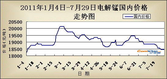 本周电解锰市场价格在上周下跌之后继续小调,目前市场主流价格为18400-18500元/吨,本周下调幅度为100元/吨,较上周300元/吨下调幅度稍显好转。