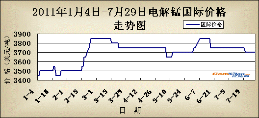 本周国外市场基本保持稳定,欧洲地区FOB价格为3350-3400美元/吨,亚洲地区出口价格为3650-3750美元/吨,预计后市电解锰国际市场整体稳定为主。