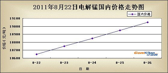 本周以来电解锰的价格可谓狂飙猛涨,以每天100元/吨的幅度上调,与上周末相比上涨500元/吨。市场现货紧张,开工不足,是导致价格上涨的根本原因。周末为止市场主流价格为:湖南花垣19000-19100,湖南怀化19000-19100,重庆秀山19000-19100,贵州松桃19000-19100,广西19300-19400,上海19500-19600(元/吨)。