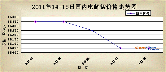 本周电解锰市场继续走低,厂家因此开工率也有所下降,贸易商以观望为主。由于电价可能继续上调,电解锰生产压力增大。目前市场报价,花垣地区主流报价为16100-16200元/吨,后期生产不易,目前为主,主流价格为市场主流价格为湖南花垣16000-16100重庆秀山16000-16100贵州松桃16000-16100广西16200-16300上海16700-16800(元/吨)。
