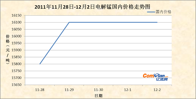 目前主流价格为湖南花垣16000-16200元/吨,湖南怀16000-16200元/吨,重庆秀山16000-16200元/吨,贵州松桃16000-16200元/吨,广西16100-16300元/吨,上海16600-16700元/吨。 原料方面,由于南方主产区电解锰开工率较低,二氧化硒需求低迷,目前价格已跌破700元/吨。而碳酸锰矿方面,市场价格暂稳,但受电解锰开工率影响,市场需求较为疲软。目前硫酸行情稳定运行,市场价格未有明显变化。 下游钢厂,不锈钢市场行情弱势表现,商家报价坚挺,但市场需求仍不乐观,成交情况一般,12月份华中某钢厂电解锰招标价格为16100元/吨。与此同时,发改委宣布全国上调电价,各地区均有不同程度的调整,这使得电解锰生产成本将上涨200元/吨左右,也预示着行业亏损将愈发严重。