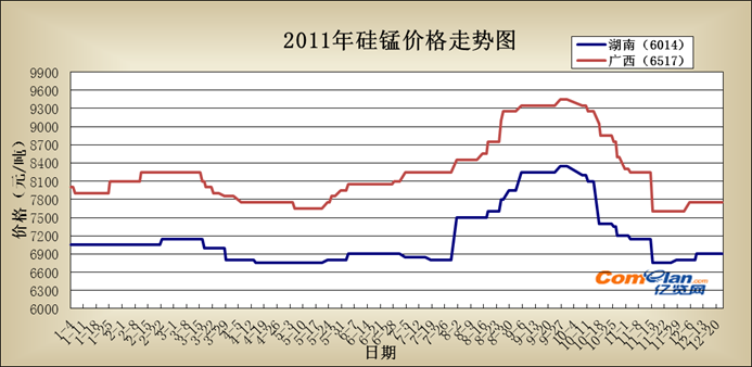目前,国内硅锰6517南方出厂报价集中在7700-7900元/吨(含税),北方出厂价集中在7900-8000元/吨,硅锰6014市场主流报价在6850-6950元/吨。