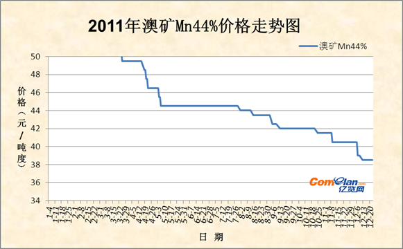进口锰矿,港口库存居高不下,因电价上涨,锰合金厂生产成本增加,企业开工受阻,锰矿的需求及成交仍显清淡,资源消耗较为缓慢。自BHP报价下调后,港口报价也随之下滑,实际成交价格呈阴跌之势,贸易商观望气氛浓重,对于后市信心稍显不足,资金回笼已成为贸易商主要心态。2011年11月我国锰矿进口量为125万吨,较上月增长72.19%,由此看来,港口库存仍然保持在高位水平。