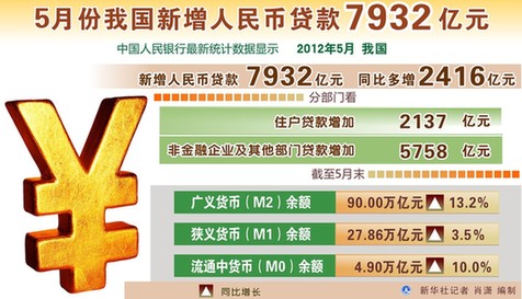 数据显示,5月人民币贷款增加7932亿元,同比多增2416亿元。分部门看,住户贷款增加2137亿元,其中,短期贷款增加1138亿元,中长期贷款增加999亿元;非金融企业及其他部门贷款增加5758亿元,其中,短期贷款增加1524亿元,中长期贷款增加1699亿元,票据融资增加2320亿元。