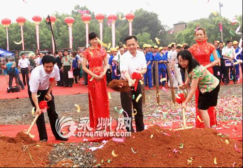张硕辅、魏旋君等永州市领导,以及瑞翔公司董事长唐顺国出席奠基典礼。