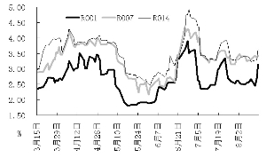 从机构交易员的反馈来看,短期资金面重新紧张的原因可能包括:首先,债券缴款较为密集。据万得资讯统计,最近三个交易日有13只债券缴款,总规模超过1200亿元;其次,财政存款存在季节性增加因素。部分机构交易员称,近期企业营业税上缴压力比较大;再者,公开市场投放资金不足。本周以来的三个交易日,公开市场投放和回笼规模正好扯平,目前为资金零投放;第四,数据显示7月份外汇占款出现38亿元的小幅下降,在贬值预期依然弥漫的8月,外汇占款仍难以带来显著的流动性供给。