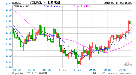 他指出:“如果美联储本周正式宣布启动QE3,且德国宪法法院对欧洲稳定机制(ESM)的合法性作出肯定的裁决,那么欧元有望攀升至1.3000。”