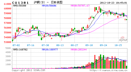 图4-1:2011-2012年沪铜(57660,-110.00,-0.19%)主力1301合约价格K线走势变化
