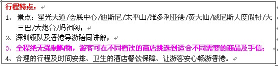 备 注:1、客人必需自备前往港澳有效证件,报名时请提供参团人的姓名、性别、出生年月日、通行证签注类别。