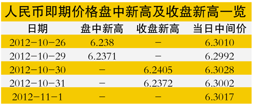 昨日中国外汇交易中心的最新数据显示,11月1日人民币对美元中间价报6.3017元,较前一交易日下跌15个基点。“目前市场还是以结汇盘为主,市场在6.24上下10个点附近窄幅波动。”一家银行交易员表示。