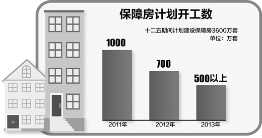 姜伟新介绍,中央政府规划“十二五”期间要建设3600万套城镇保障性住房,2011年已经开工了1000万套,今年开工700多万套,明年计划开工数量正在研究当中。根据总的估算,明年不会低于500万套,有可能在600万套左右。