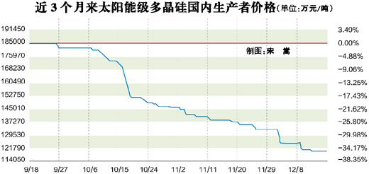 “现在多晶硅的现货价格每吨十几万元,跟最高时的每吨320万元比,连零头都不够。”多晶硅价格及下游电池组件价格已接近甚至低于生产成本。全国43家多晶硅投产企业,仅剩七八家尚在开工