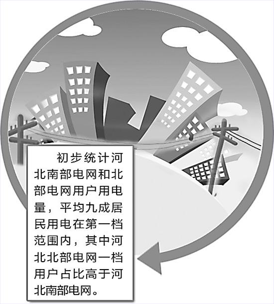 在阶梯电价试行初期,有不少市民担心用电超档。如今,阶梯电价已试行半年有余,从省电力部门获悉,初步统计河北南部电网和北部电网用户用电量,平均九成居民用电在第一档范围内,其中河北北部电网一档用户占比高于河北南部电网。