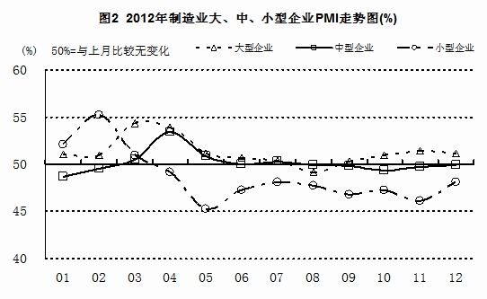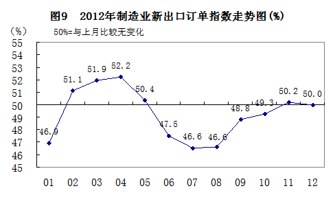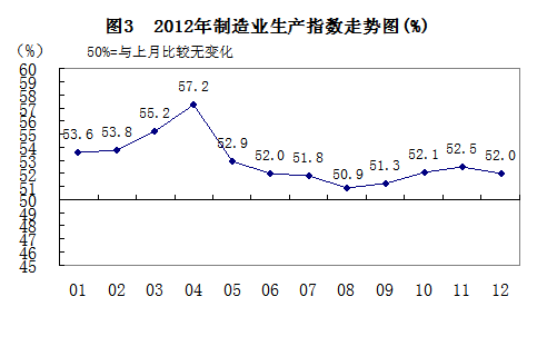 | 欧债危机持续了3年之久,2012年欧债问题仍是贯穿欧洲经济形势变化的主线 ,美国和日本等世界主要经济体经济复苏乏力,新兴经济体经济增速放缓,世界实体经济受到了严重冲击。在外部市场需求不旺,国内经济下行压力增大的背景下,制造业经济呈现总体增速放缓的迹象,2012年中国制造业采购经理指数呈年初冲高、年中探底、年末回稳的走势。
