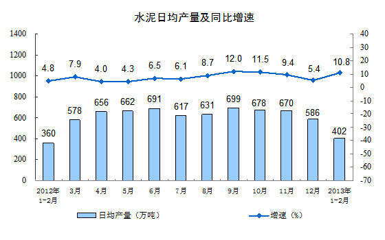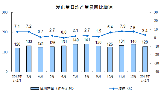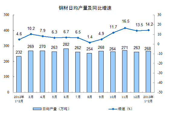 分产品看,1-2月份,464种产品中有333种产品同比增长。其中,发电量7573亿千瓦时,同比增长3.4%;钢材15827万吨,增长14.2%;水泥23729万吨,增长10.8%;原油加工量8065万吨,增长3.0%;十种有色金属622万吨,增长13.5%;乙烯271万吨,增长2.3%;汽车350.0万辆,增长12.4%;轿车192.2万辆,增长19.5%。