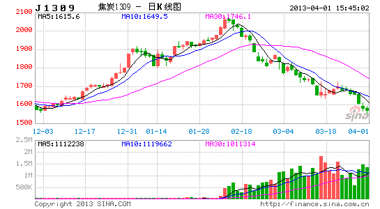 焦煤:焦煤主力合约JM1309上周收大阴线。开盘价1276元/吨,最高价1286元/吨,最低价1231元/吨,收盘价1240元/吨,较前一周下跌27元/吨,跌幅2.13%;成交量3437576手,持仓量96024手。