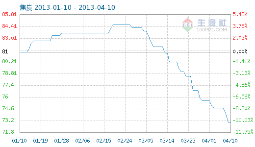 4月10日焦炭商品指数为72.97,与昨日持平,较周期内最高点100.79点(2011-09-27)下降了27.60%,较2012年09月27日最低点65.22点上涨了11.88%。(注:周期指2011-09-01至今)