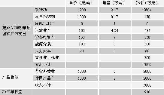 4.焙烧后球团损失约10%,可获得约3万吨球团产品。 |