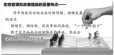 一是有长远眼光和战略思维。经过30年的高速增长,我国经济积累了许多深层次矛盾和问题。面对压力,如何处理好短期与长期的关系十分重要。我们出台的政策既要有利当前,更要惠及长远。通俗地说,就是要用中西医结合的办法处理问题,通盘考虑,增强发展的活力。