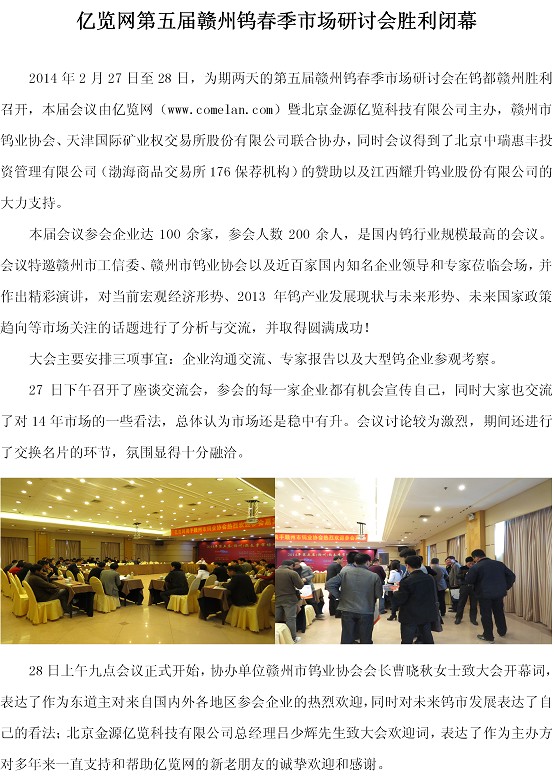 亿览网第五届赣州钨春季市场研讨会胜利闭幕