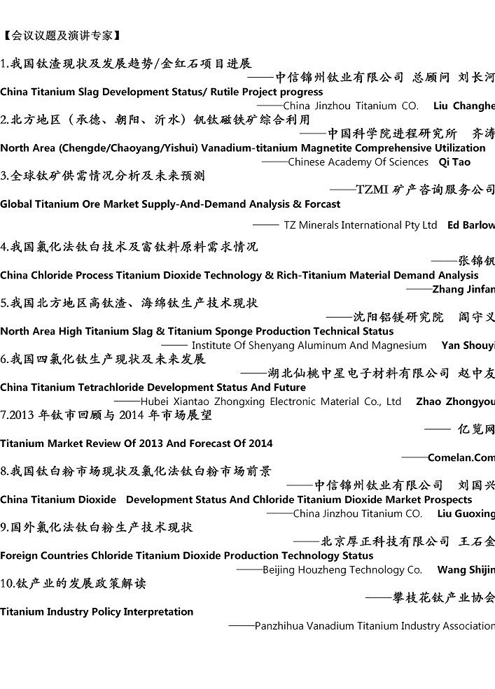 2014年中国钛产业高峰论坛邀请函
