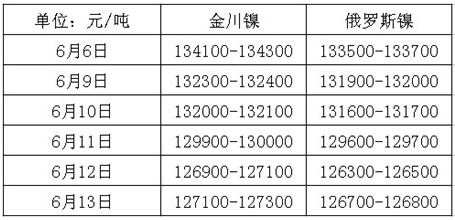 外盘下跌,金川公司被迫跟随下调镍板出厂价格。国内镍板价格继上周下滑后,进一步下滑,累计下跌6000-6200元/吨。受买涨不买跌因素影响,市场在见镍价走低过程中,多持观望态度,周四、周五,见市场镍价下跌幅度加大,部分下游商家入市购货,但购买量并不很大。整体成交状况偏淡。
