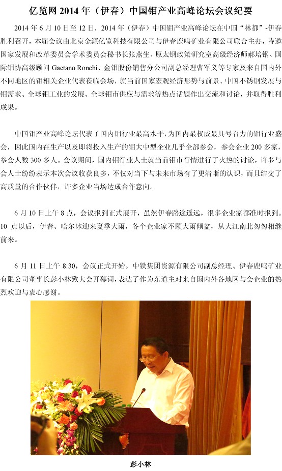 亿览网2014年(伊春)中国钼产业高峰论坛会议纪要