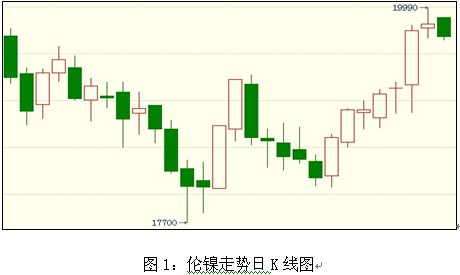 从盘中来看,之前,较长一段时间,伦镍走势图中,下方支撑线始终较为稳固,安全边际令投资者偏好于做多。且自上周三至本周四,伦镍录得七连涨行情,这反映伦镍走势强劲。但另一方面,从周四伦镍走势来看,1.98万上方市场空方力量极为强劲,我们认为该做空力量或系持有多单或实货商家所为,对伦镍价格产生较强的阻碍。下周看伦镍能否在1.98万上方持稳,若能,则伦镍或有进一步上涨。